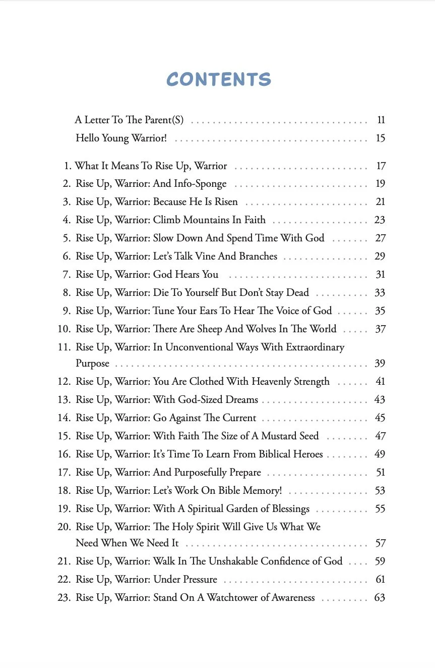 If you want to RISE UP, WARRIOR but aren’t sure where to start, my book, “RISE UP WARRIOR: Daily Info-Sponge” is for you! You can grab your copy today by heading to the “Books” section of my website and clicking the “Purchase on Amazon” button! My 100-day devotional is available via paperback and kindle.